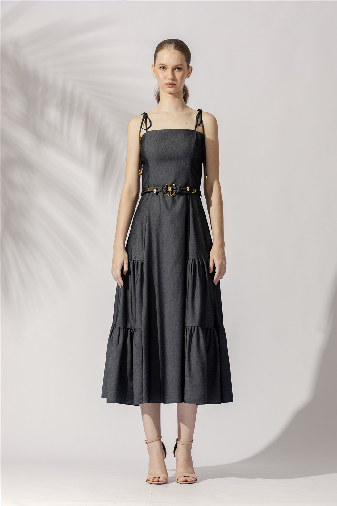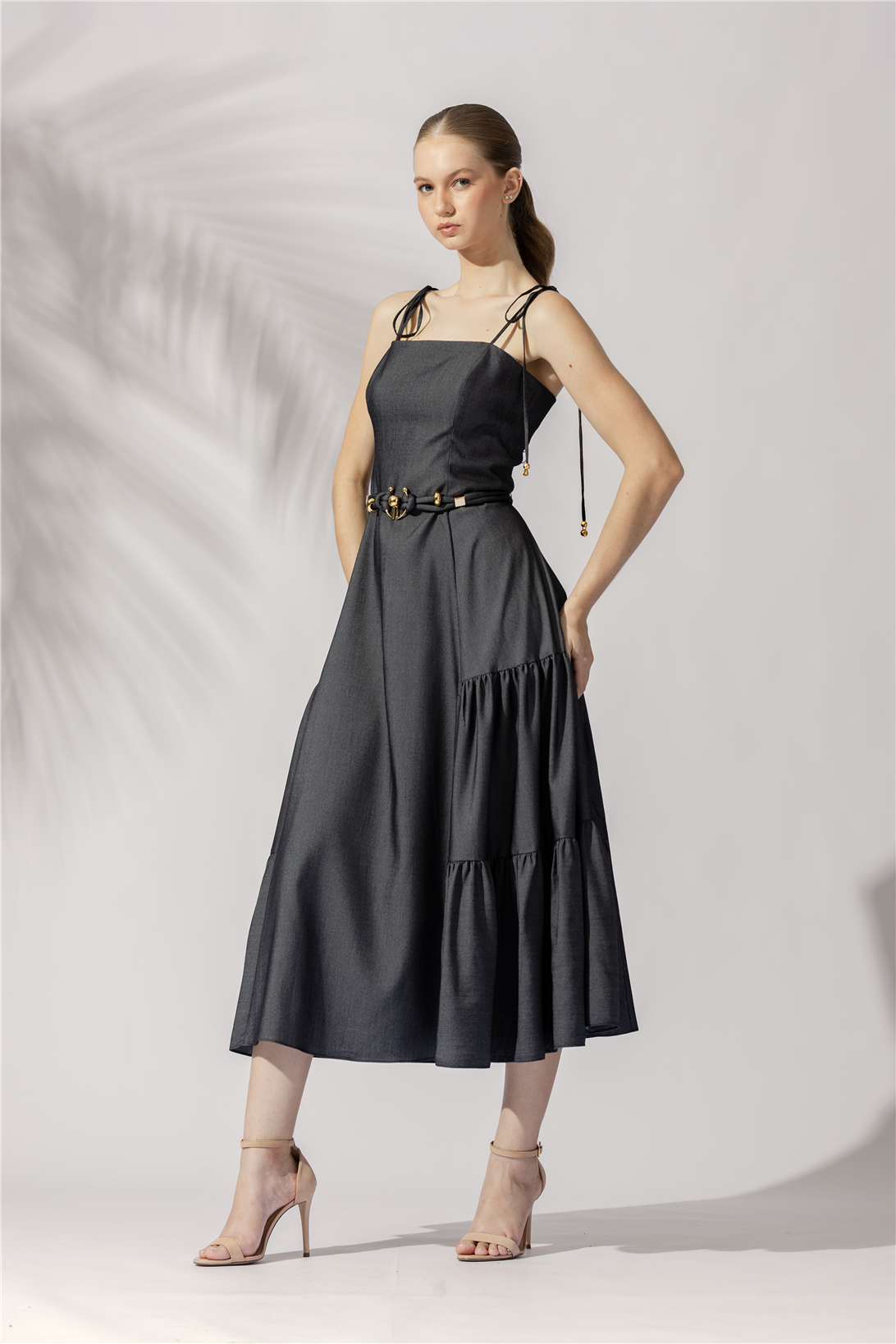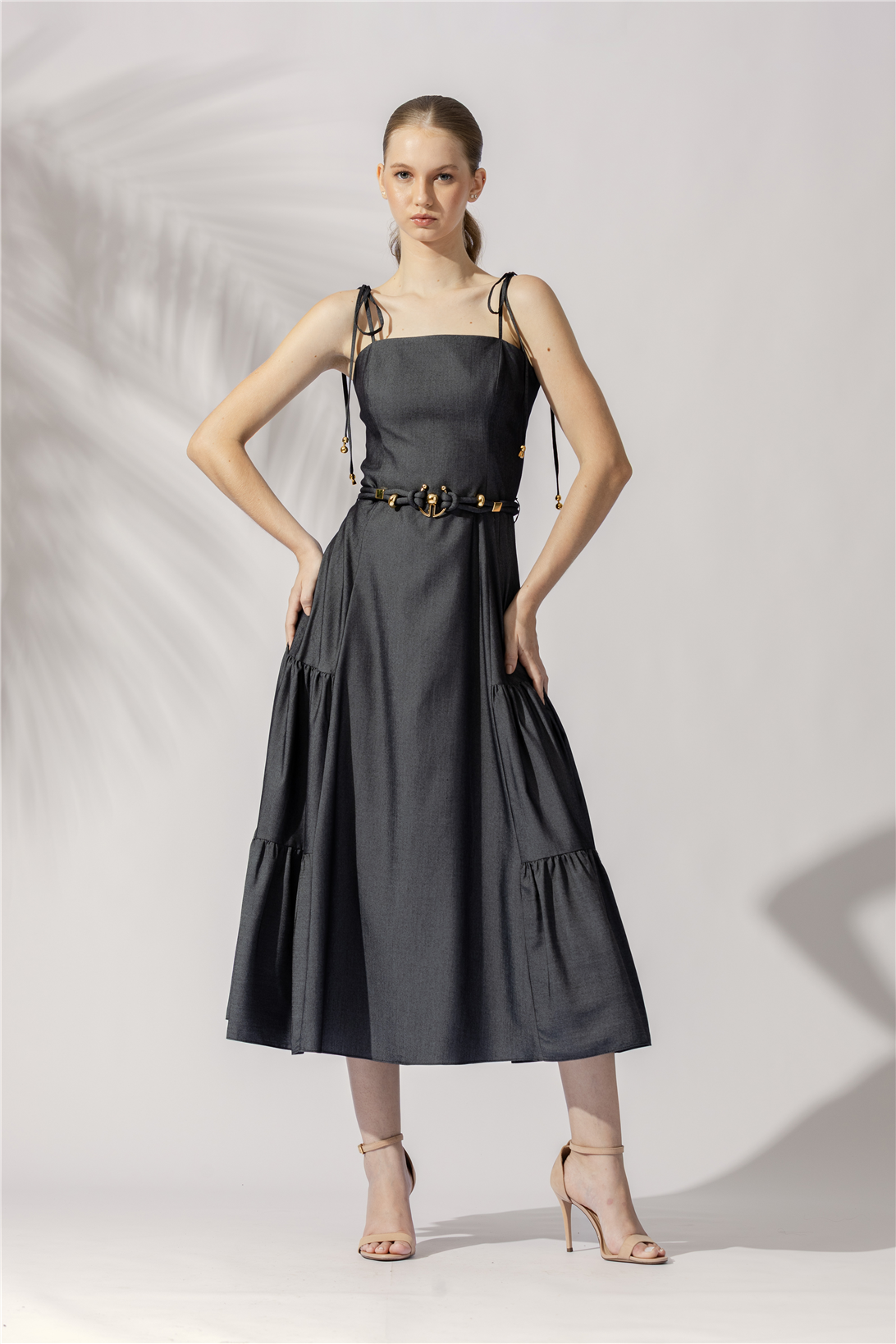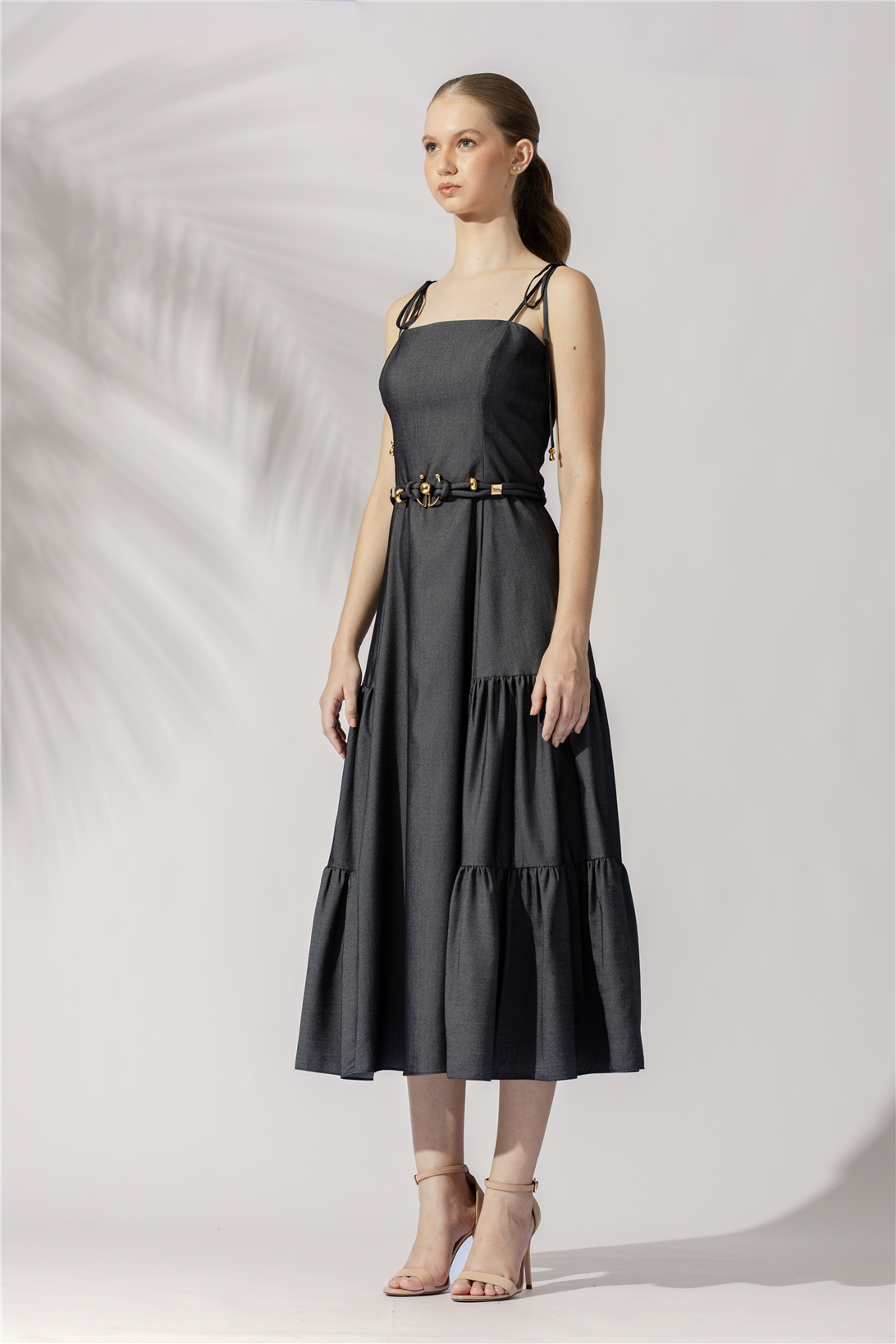 A vestido Larissa é a definição de elegância atemporal! Confeccionado em jeans de gramatura leve, ele possui um caimento impecável que valoriza a silhueta. Sua modelagem ajustada na parte superior e saia evasê trazem um equilíbrio perfeito entre sofisticação e leveza. O comprimento midi oferece toque clássico e versátil, ideal para diversas ocasiões. Com detalhe de franzidos sutis nas laterais, o vestido garante movimento e fluidez ao look. Possui cinto com detalhes em semijóia. Uma peça perfeita para quem busca sofisticação e feminilidade em uma única produção!